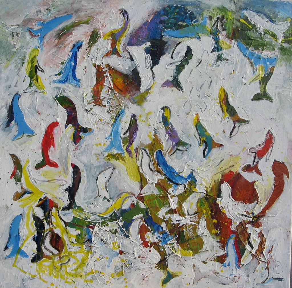 Below is an earlier painting of seals which I saw on a journey to the Chatham Islands. This work was inspired by a carving in a cave.