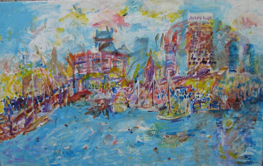 All at Sea framed, acrylic on backing board,650mm x 65mm, $525