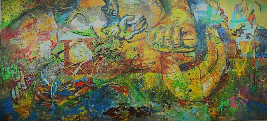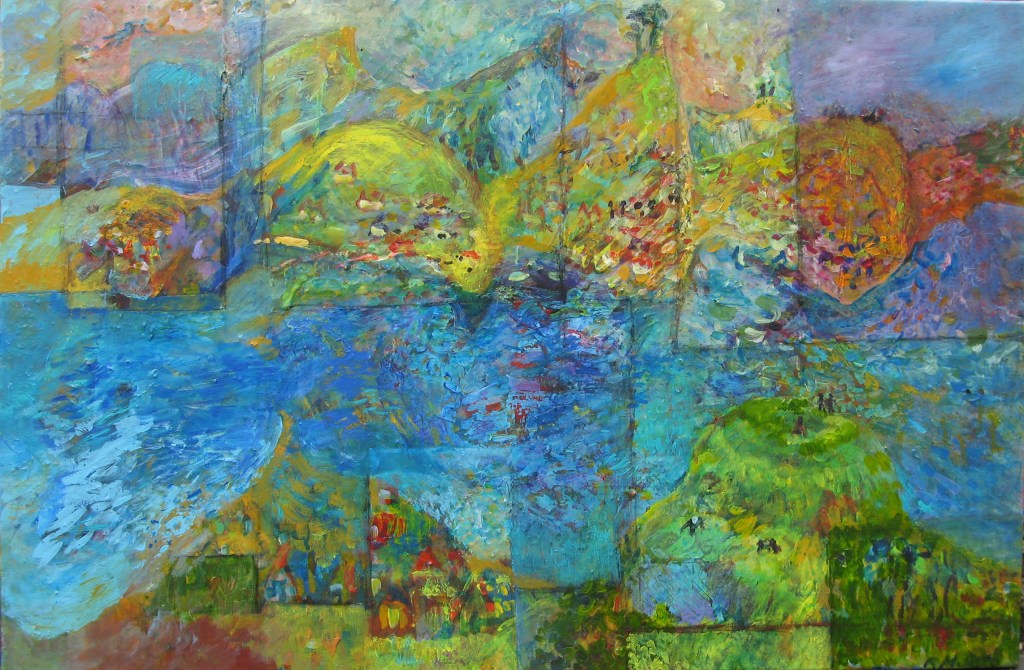 Garden State acrylic collage on canvas 850mm H x 1820mm W
