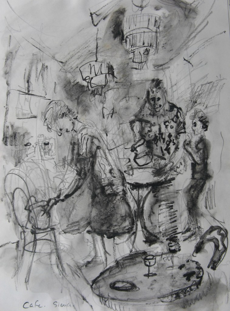 Cafe Sienna – charcoal on paper approx. 330mm H x 250mm W