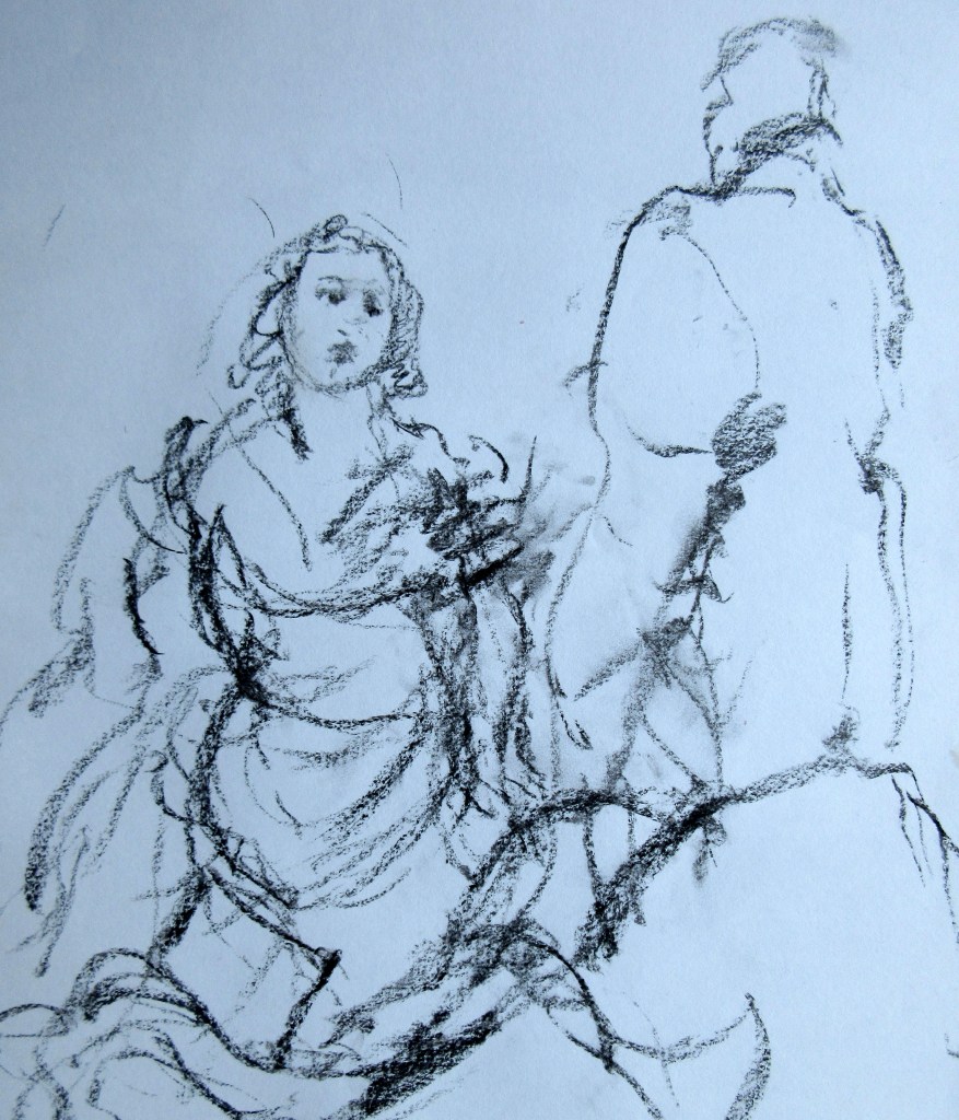 Other tableaux followed within in the day which forced us to develop rapid sketching techniques. I always preferred to use pastels, charcoal or even simply to draw with a loaded brush in ink or acrylic. Sometimes, maybe years later, larger works on canvas resulted.