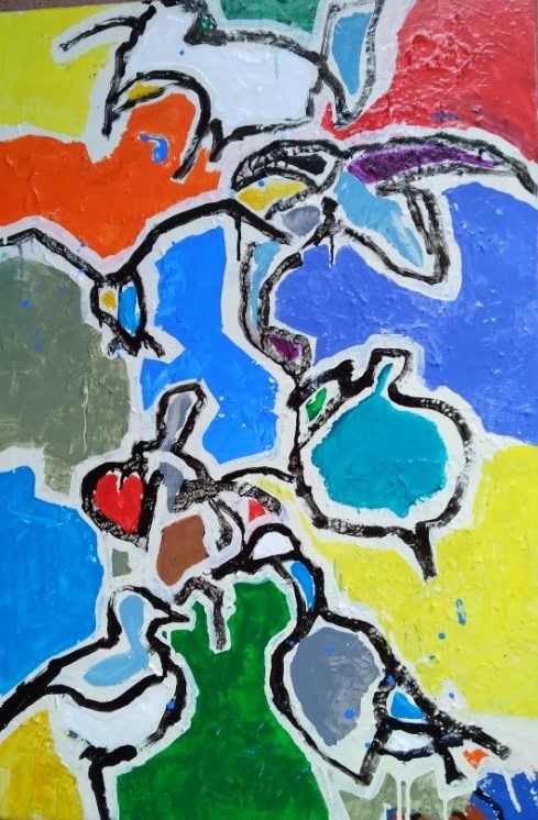 The ‘blind drawings’ are then gleefully reconstructed on 300gsm damp paper taking full advantage of the freedom of choice that mixed media allows me.