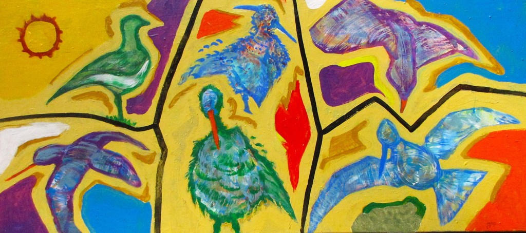 Near my artist friend Marion’s home are banks where shorebirds like to rest. On occasions when the tide is high (and we are both free, usually early mornings) we take our sketching materials out on to the Manukau Harbour shore.
