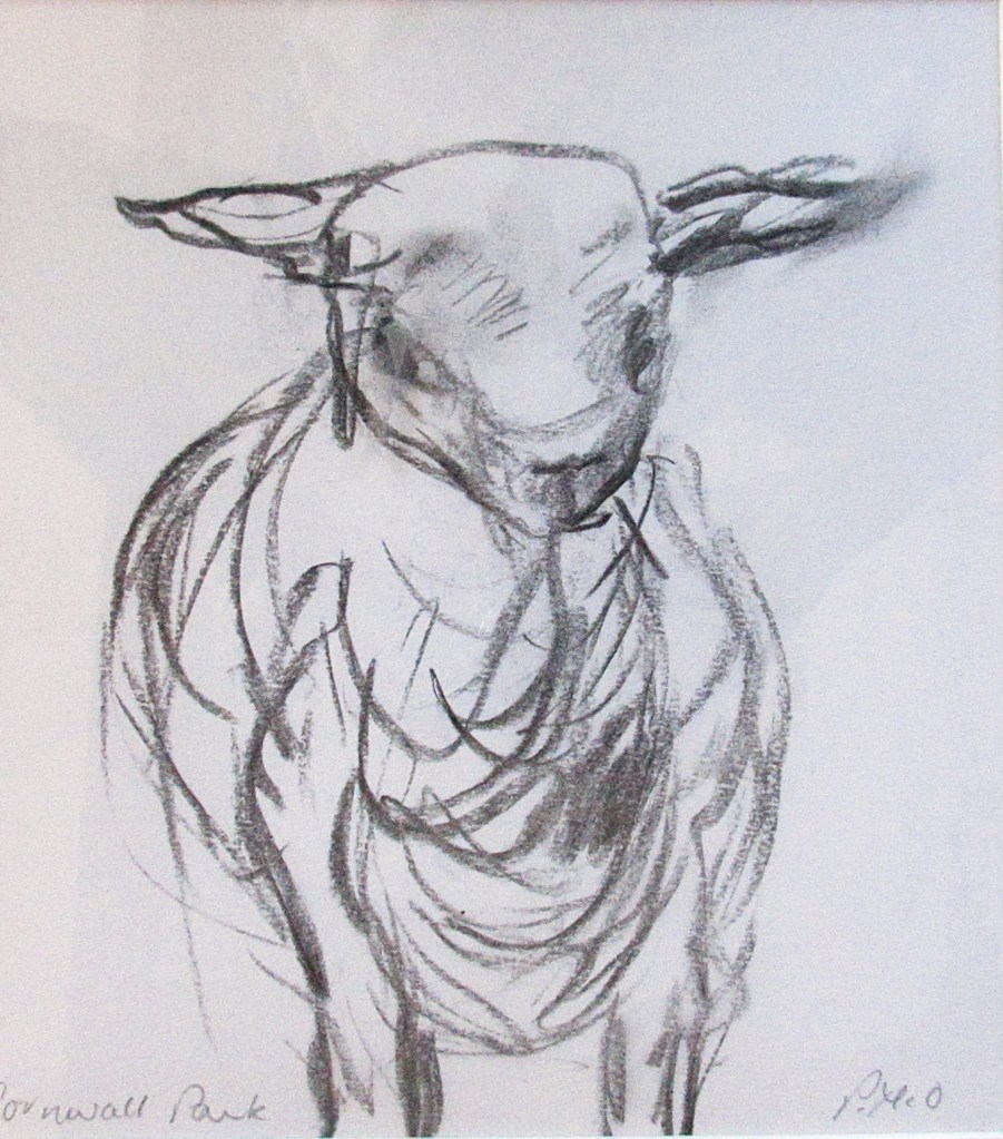 The Sheep – charcoal on paper (an example of “blind drawing”)