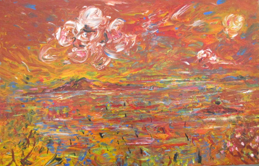 A second work, more recent yet also water-themed, Low Tide was drawn on the spot at the local reserve. Storm clouds brewing and the water ruffled by wind—capturing a fleeting, unsettled moment along the shoreline.